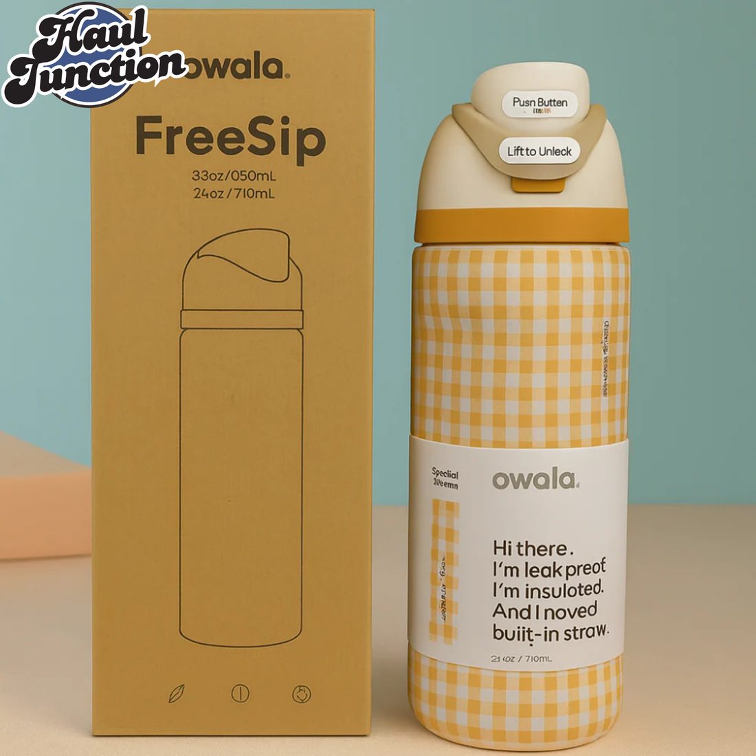 OWALA FREESIP 24OZ WATER BOTTLE - MUSTARD GHINGHAM