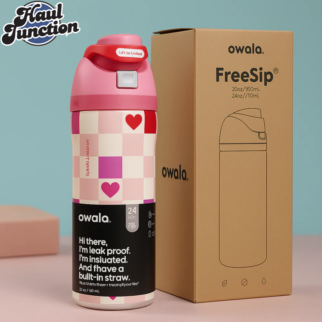 OWALA FREESIP 24OZ WATER BOTTLE - CHESS HEARTS