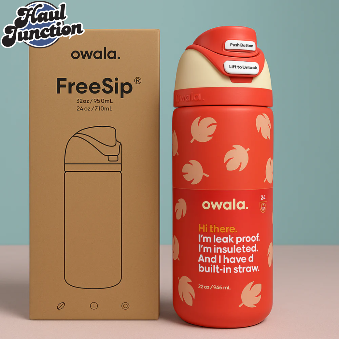 OWALA FREESIP 24OZ WATER BOTTLE - CORAL LEAF