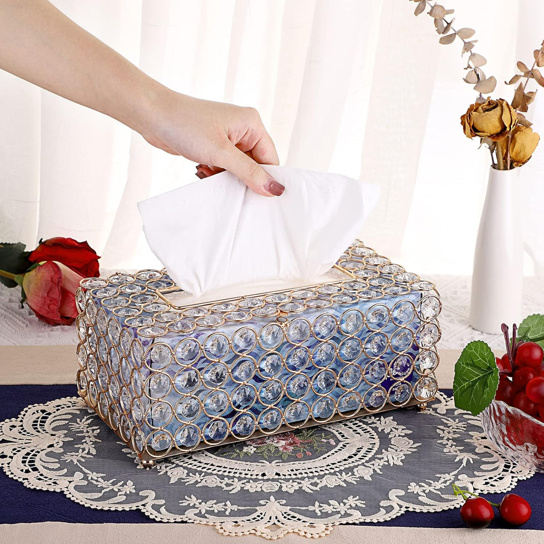Classic Rectangle Tissue Box, Napkin Dispenser, Rose Diamond Inlayed, Tin Alloy, Metal, Hotel, Home, Table...