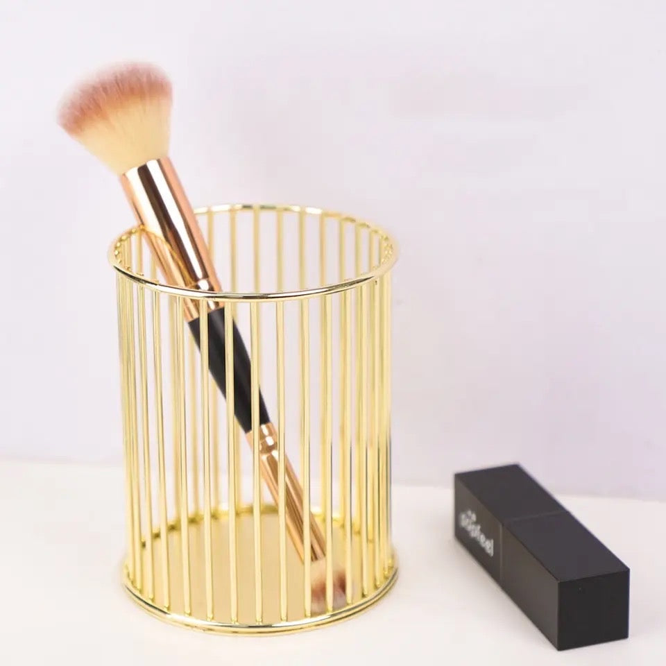 Wire Mesh Pen Holder, Metal Desktop Pen Holder, Round Stick Cylinder Pen Pencil, Makeup Brush Holder, Desktop Storage Box for Office Home, Metal Hollow Out Pen Holder for Desk, Desktop Accessories Wire Makeup Brush Holder