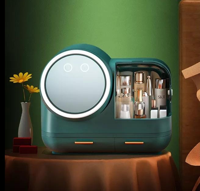 Table Storage Box New Cosmetics Storage Box with LED Makeup Mirror Creative Desktop Dust-proof Skin Care Products Dressing
