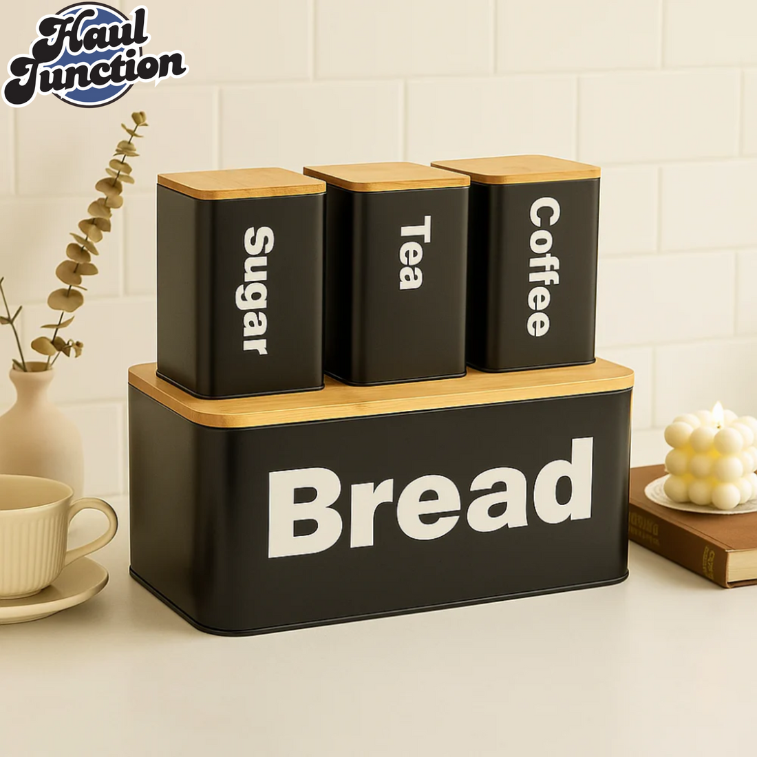 LUXURMOVE BREAD BOX SET BAMBOO LID