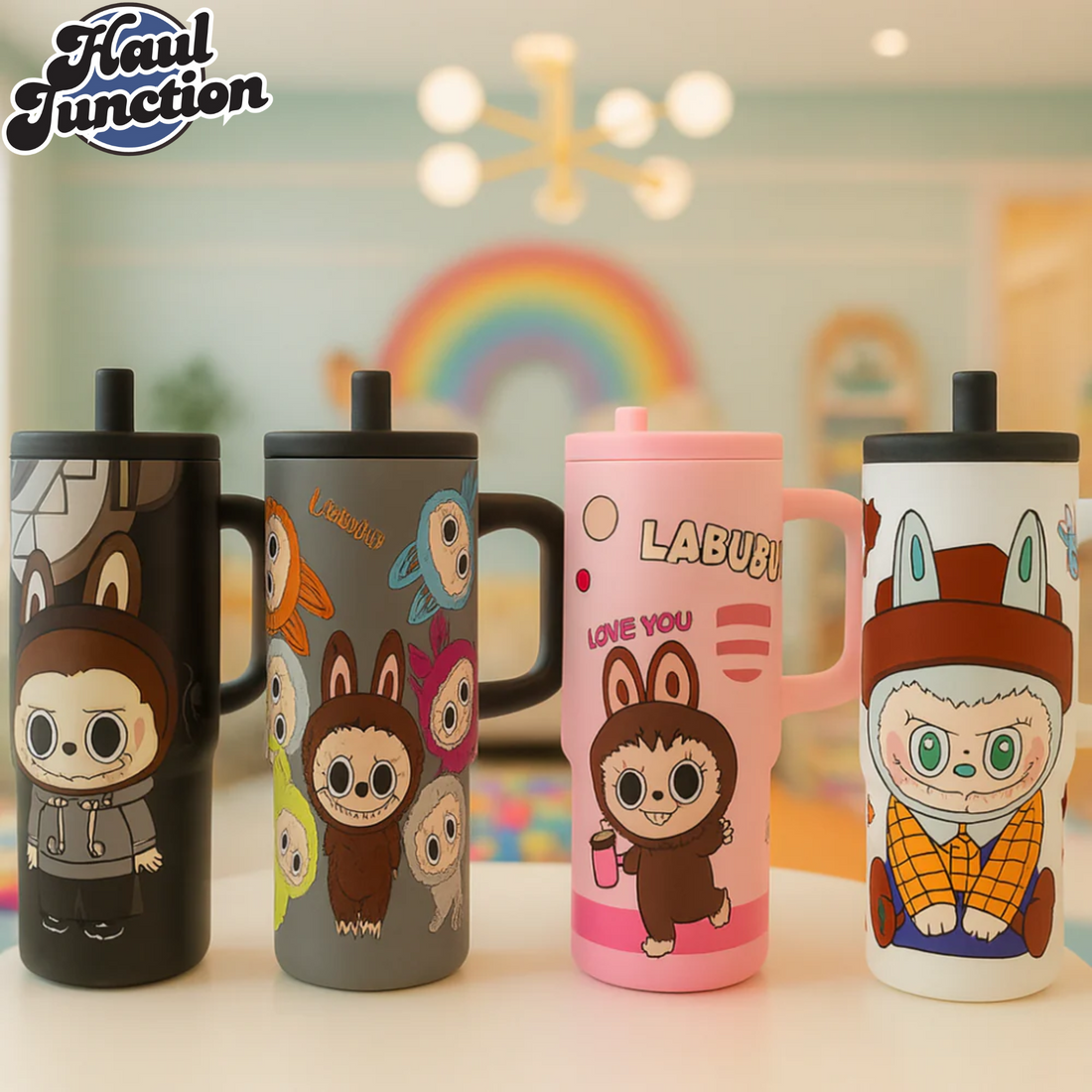 LABUBU COFFEE MUG – CUTE CARTOON INSULATED TRAVEL CUP WITH LID, LEAKPROOF PORTABLE THERMOS TUMBLER FOR HOT & COLD DRINKS