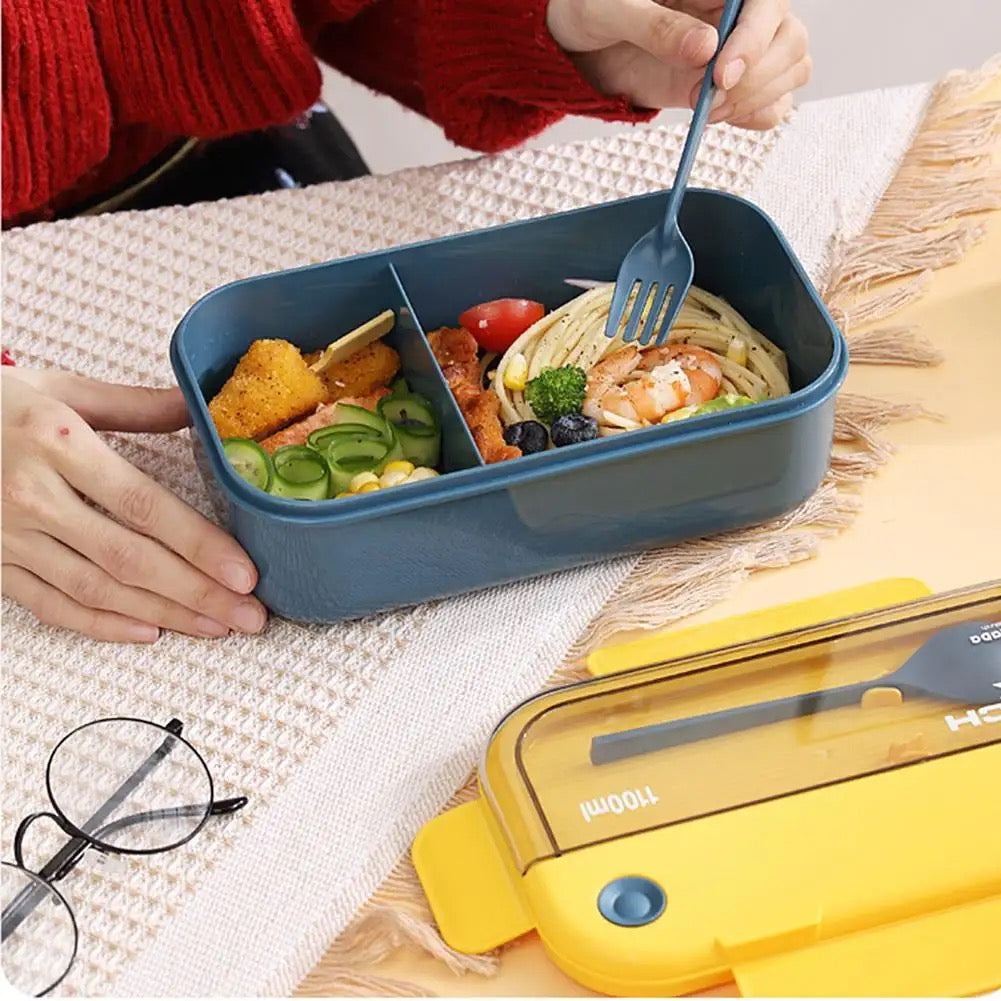 2 Compartment Lunch Box - Convenient Sealed Bento Lunch Box with Fork & Spoon