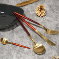 24 PCs Premium Steel Cutlery Set-Red over Golden