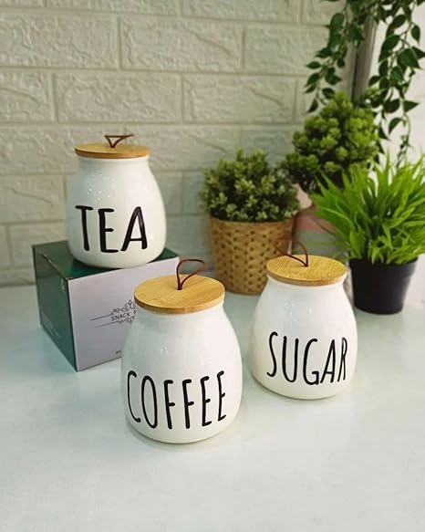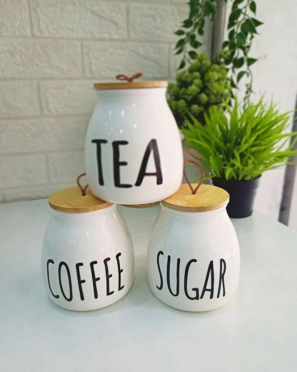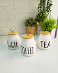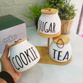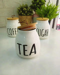3 Pieces Tea coffee sugar on Stand Elegant Bamboo Wooden Set