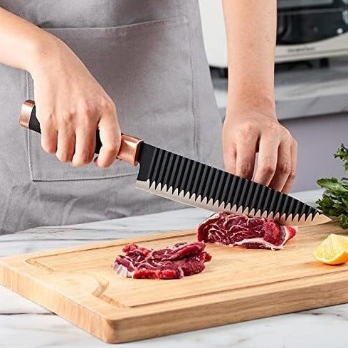 Made with high-carbon stainless steel and 58 Rockwell hardness, these precision-forged knives resist rust, corrosion, and discoloration for long-lasting durability.