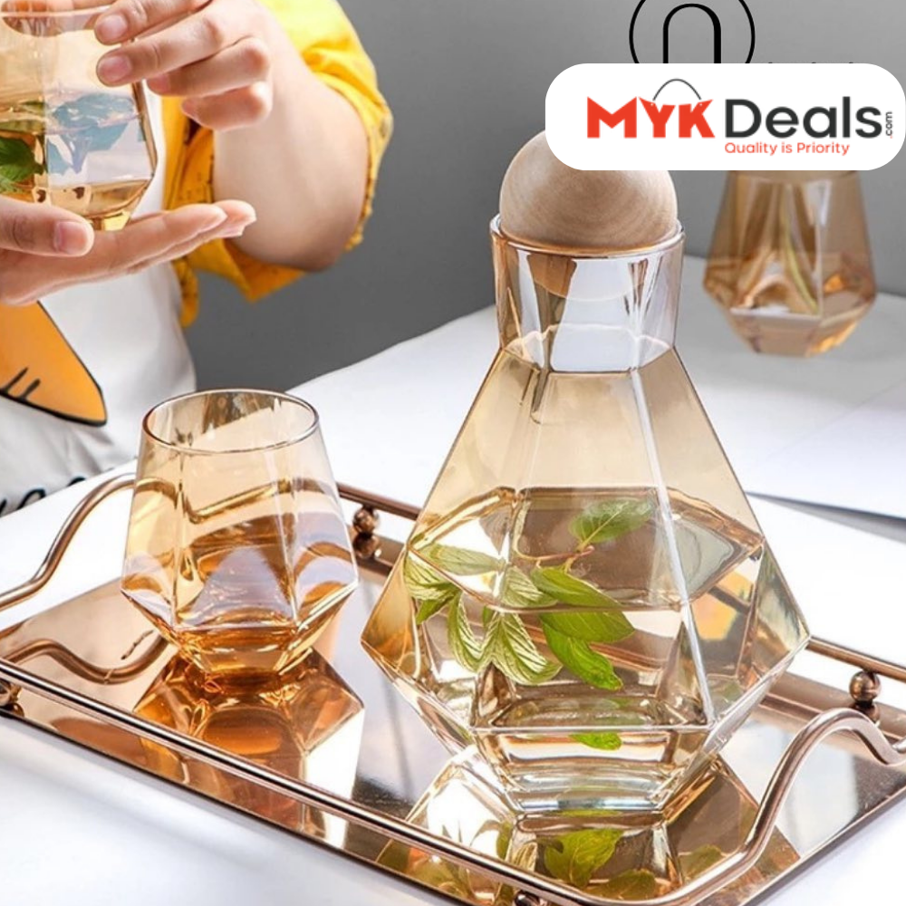 Unusual is gladly presenting you a nordic style blue glass set with cork lid jug -7 pcs. It's the most elegant and classic design you will not find out at any store for a drinking glass. It can hold both hot and cold drinks and can bear the heat. It is made up of high-quality glass that makes it more durable. When you drink water from a glass it gives you an extraordinary taste which you cant experience in plastic. This design is best for your distinguished guest and will increase the beauty of your dining table. The cork lid on the jug will help in the safety measure of drinking water and save it from pests, insects, and other small flies. Its extraordinary vintage-looking design will increase the charm of your dining table. It will be perfect serve-ware for your distinguished guests. So rush online order & enjoy our best selling product.