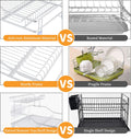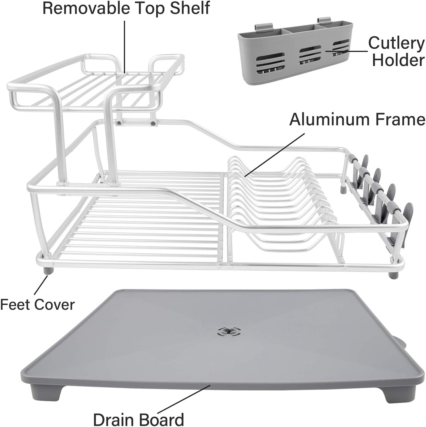 Aluminum 2 Tier Dish Rack with Removable Drainer Cutlery Holder & Cup Holder Dish Drainer Drying Rack for Kitchen