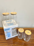 ✅Including 4 Sipper With Wooden Lid, Glass Straw & Cleaning Brush