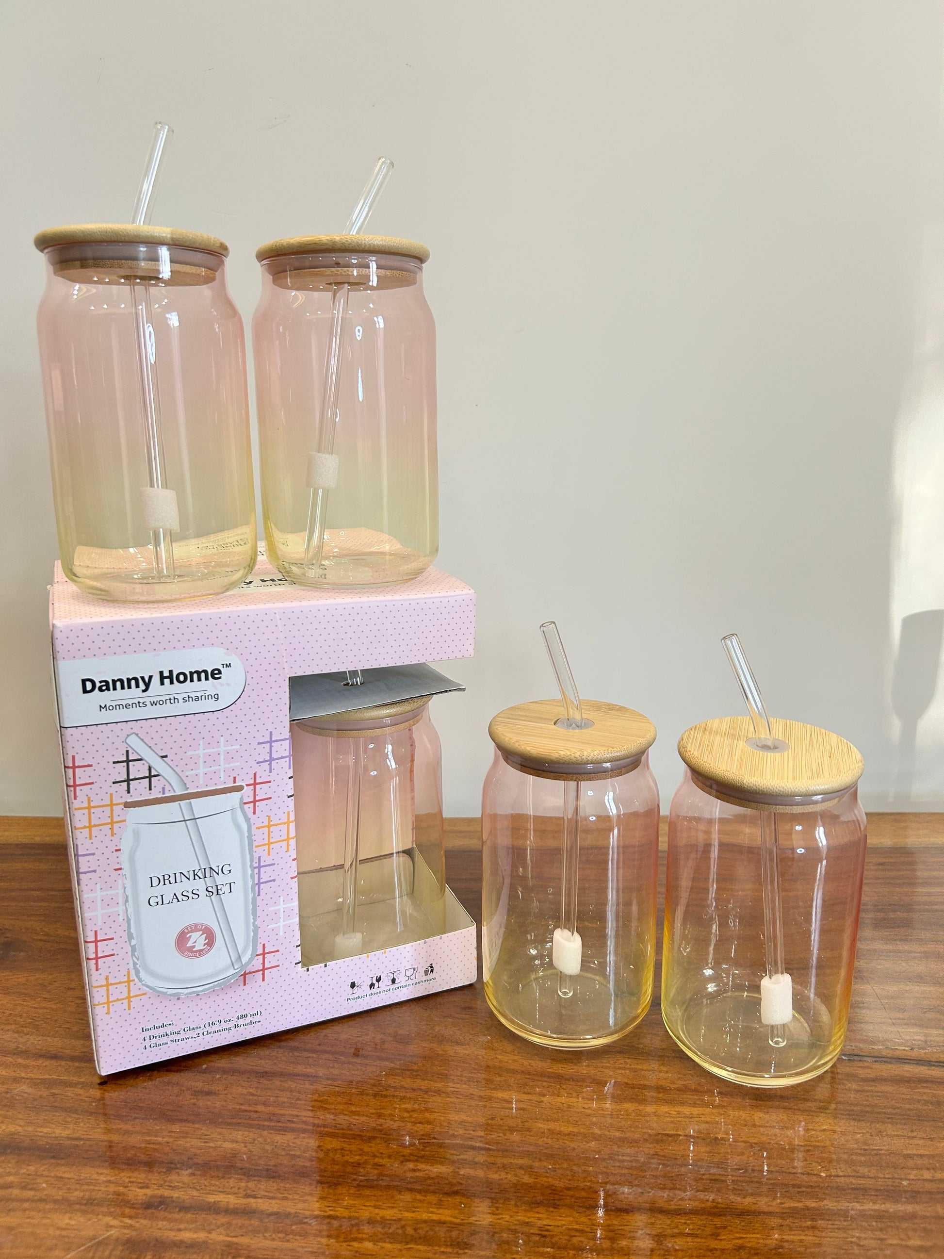 ✅Including 4 Sipper With Wooden Lid, Glass Straw & Cleaning Brush