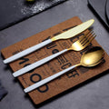 Stylish & Practical Design: Elevate your dining experience with HaulJunction's elegant cutlery set. The mirror finish stainless steel cutlery set with golden spoons and white handles brings sophistication to your table.