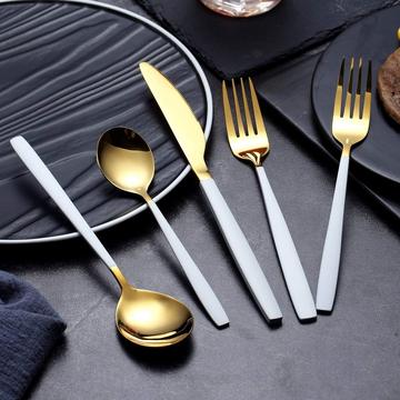 Durable & Skin-Friendly Material: Crafted from high-quality stainless steel, this cutlery set is durable, long-lasting, and resistant to rust. The golden spoons and white handles provide an added touch of luxury.