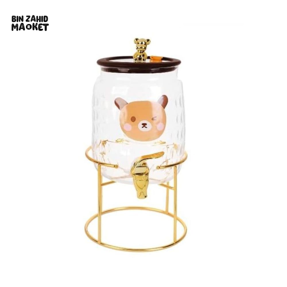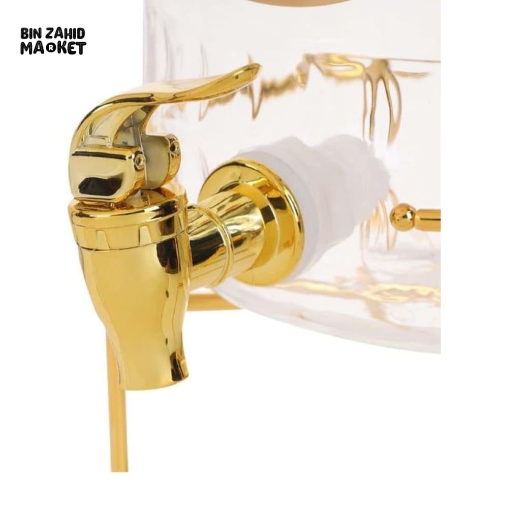 GLASS DISPENSER WITH TAP – 3.2 LITERS TRANSPARENT DRINK DISPENSER WITH METAL BASE GOLD ACCENTS