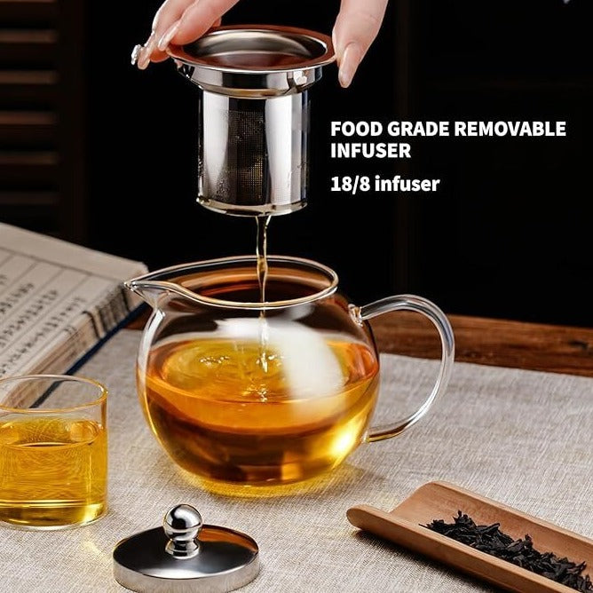 Enjoy a timeless tea experience with HaulJunction's Heat Resistant Glass Teapot. Featuring a sleek glass design with a removable stainless-steel infuser, it blends elegance and functionality.