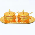 Stainless Steel Royal Golden Sugar Pots with Tray And Spoons