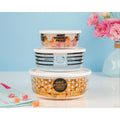 This set includes three round containers in small, medium and large sizes. The material of this type of container is made of high-quality glass with high thickness and without any reactivity with different materials, it is possible to store any food and edibles in a completely hygienic way. It provides a long time.