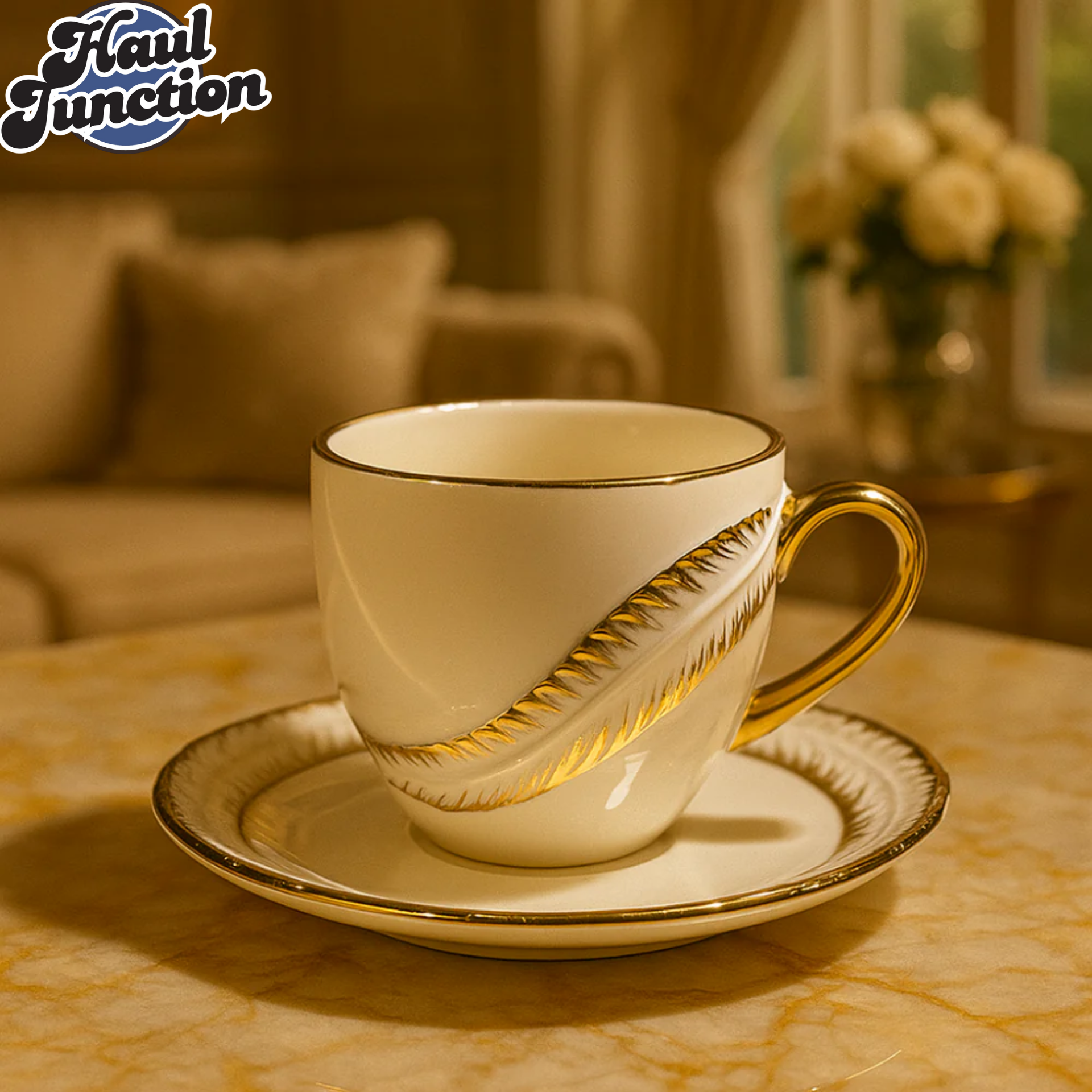 Add timeless charm to your tea moments with the Luxury Fine Bone China Cup & Saucer – Gold Leaf Design, exclusively from HaulJunction. Crafted from premium fine bone china, this 12-piece set includes six cups and six matching saucers, each elegantly decorated with gold leaf detailing for a royal yet modern aesthetic. Perfect for those who appreciate refined design and quality craftsmanship, this set makes every tea or coffee serving feel like a special occasion.
