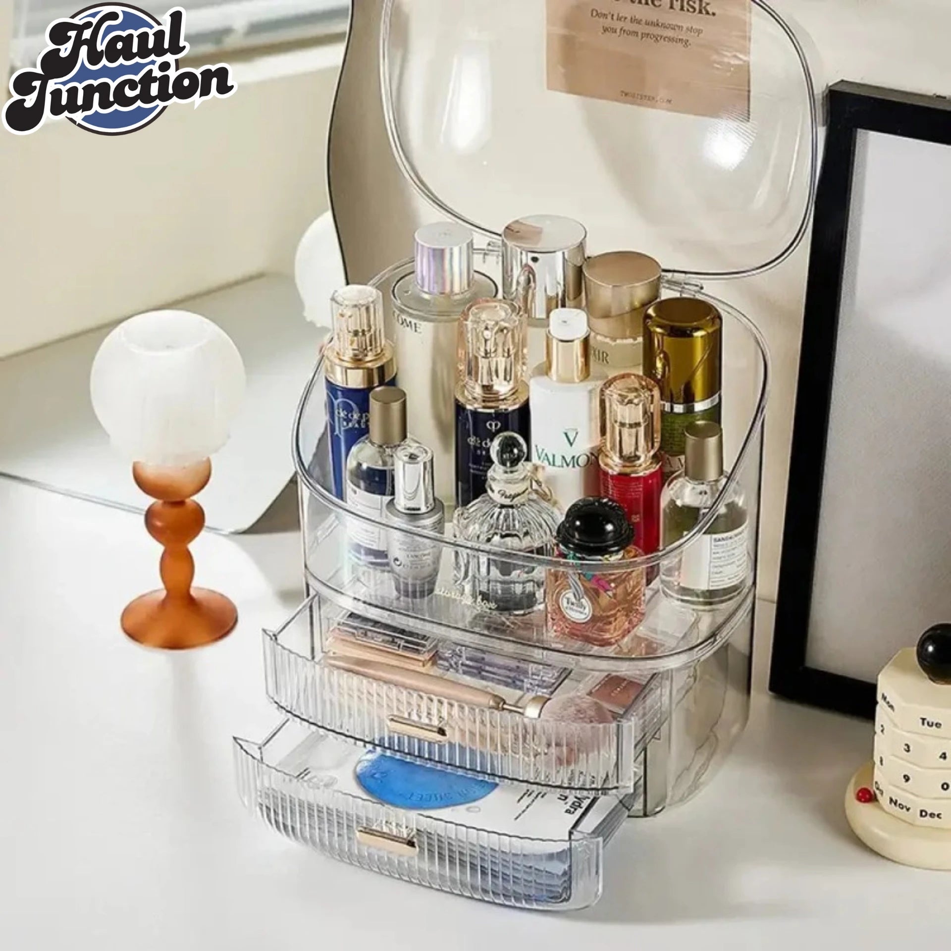 LUXURY HOUSEHOLD COSMETIC STORAGE BOX – DUSTPROOF LIPSTICK ORGANIZER SKINCARE PRODUCT RACK WITH LID MAKEUP & PERFUME STORAGE BOX