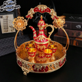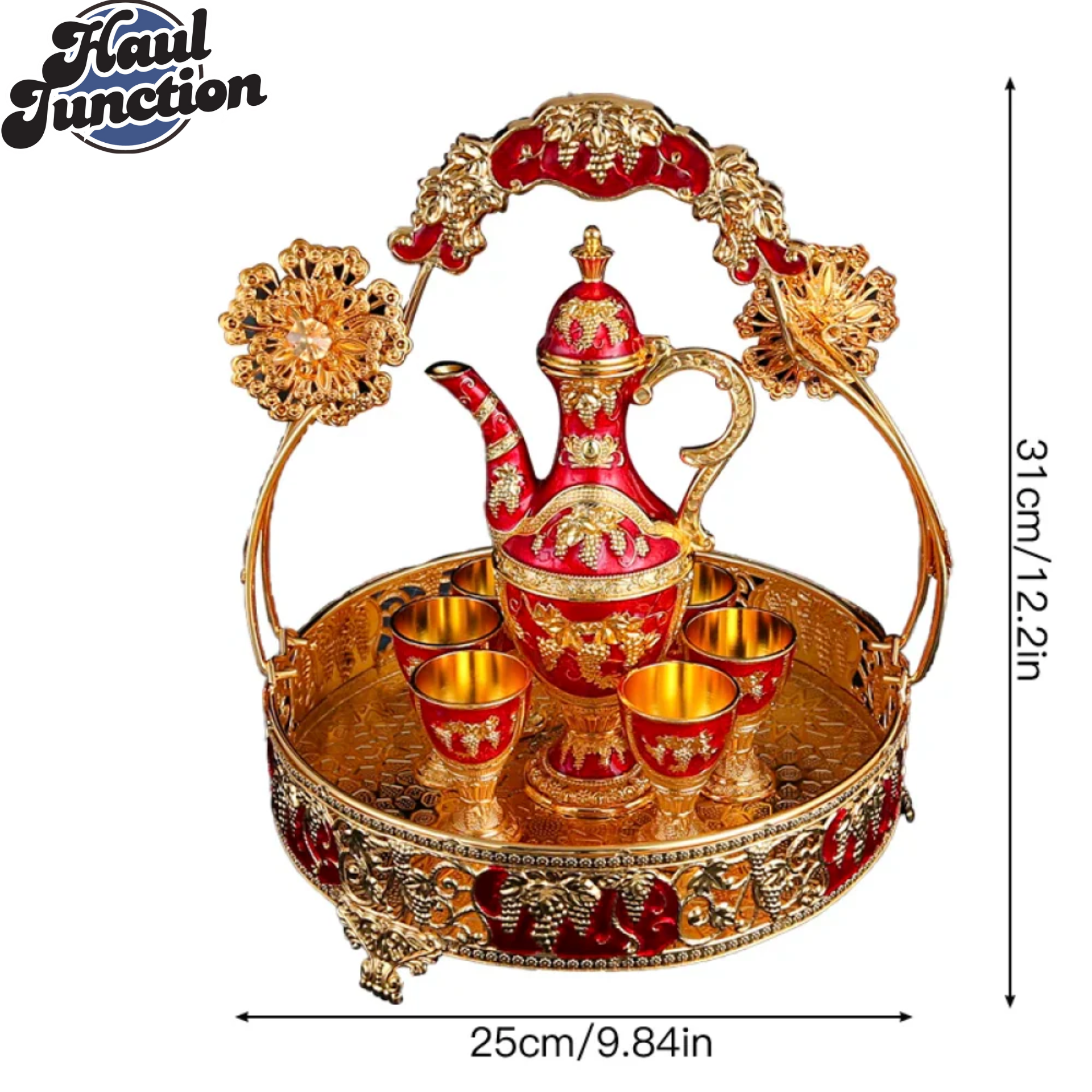 Luxury Metal Rose Embossed Drink Set – 1 Serving Pot, 6 Glasses & Decorative Basket
