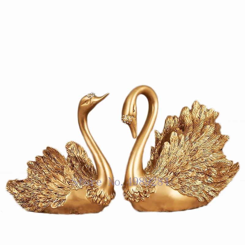 Nordic Creative Resin Gold swan Couple Crafts ornaments