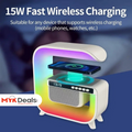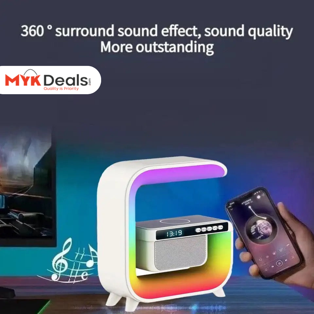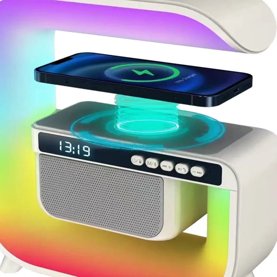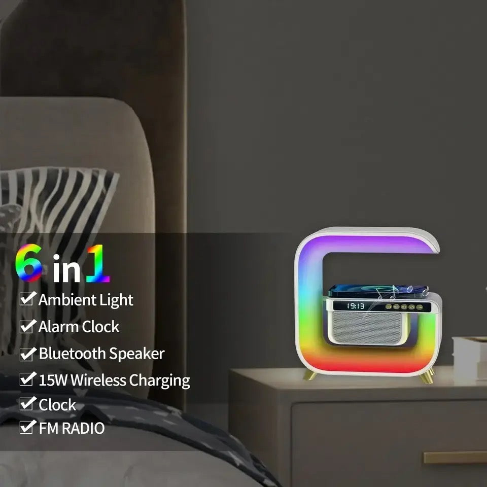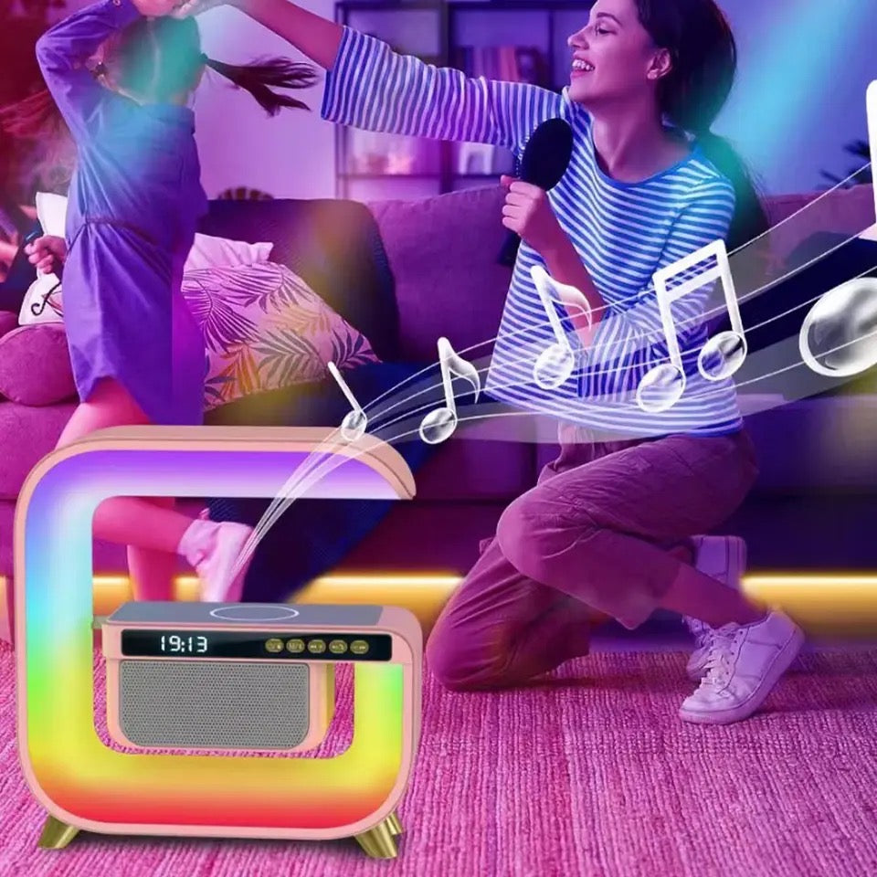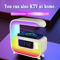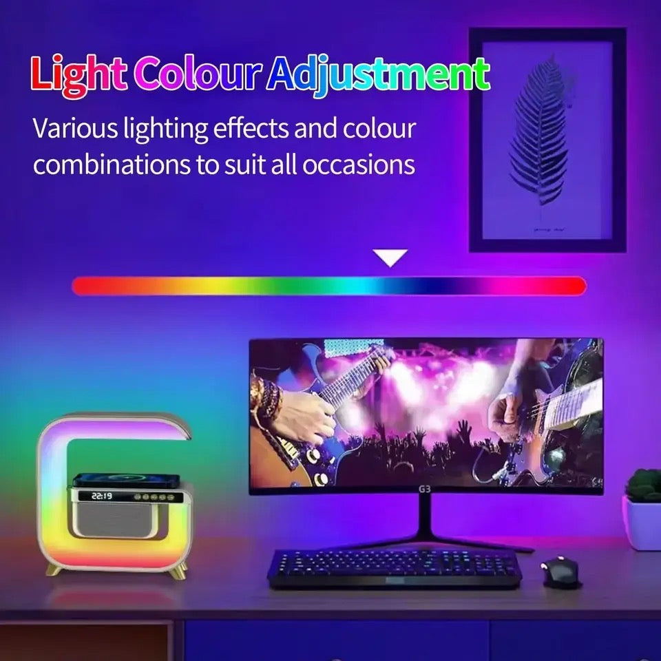 Square G Lamp, Multifunctional Bluetooth Speaker Alarm Clock, 15W Wireless Mobile Phone Charging Station Colorful Wireless Subwoofer RGB Light Lamp, New Smart Light LED Atmosphere Lamp, Sound Machine Smart Light