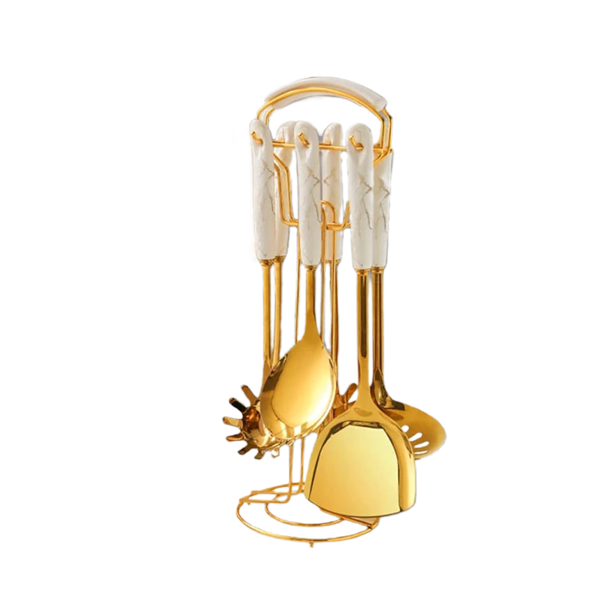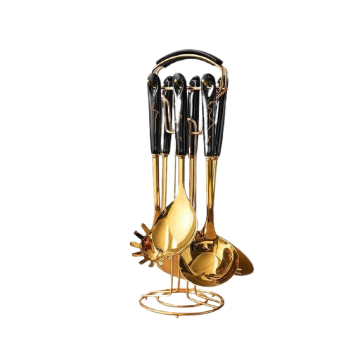 Transform your kitchen with this Golden Stainless Steel Utensil Set featuring exquisite marble-pattern handles. Available in two elegant colors—Black Gold and White Gold—this 7-piece set adds a luxurious and modern touch to your cooking space.