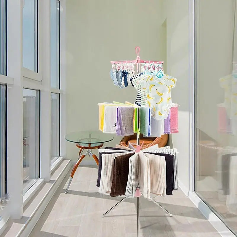2.User-Friendly Functionality: The 360° swivel and adjustable arms of this clothes drying rack make it easy to hold and load clothes for even drying. Its foldable and space-saving design ensures optimal airflow for better drying results.