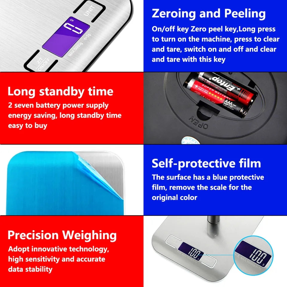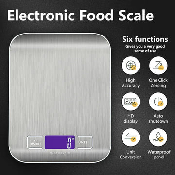 Stainless Steel Digital Kitchen Scale 10kg Silver
