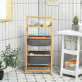 - Multifunctional bamboo storage rack, which can be used as a towel rack, bathroom storage rack, and laundry room storage rack for placing towels, bathrobes, clothes, washing powder, etc.