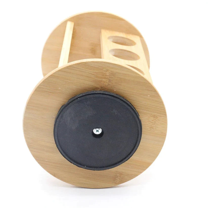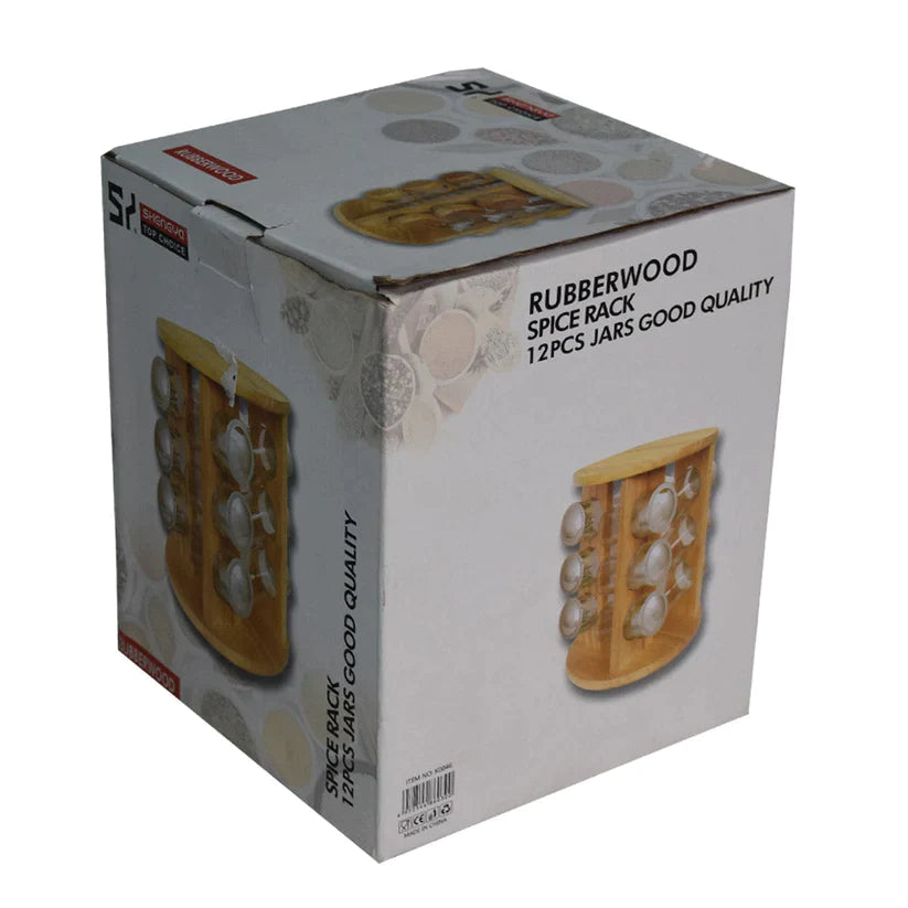 Bamboo Revolving Base Rack. Set of 12 Spice Jars with Bamboo Lids. Bottles are dishwasher safe. Bamboo Material gives more strength and durability along with contemporary look. Rack Size: Height: 29cm Diameter: 20cm
